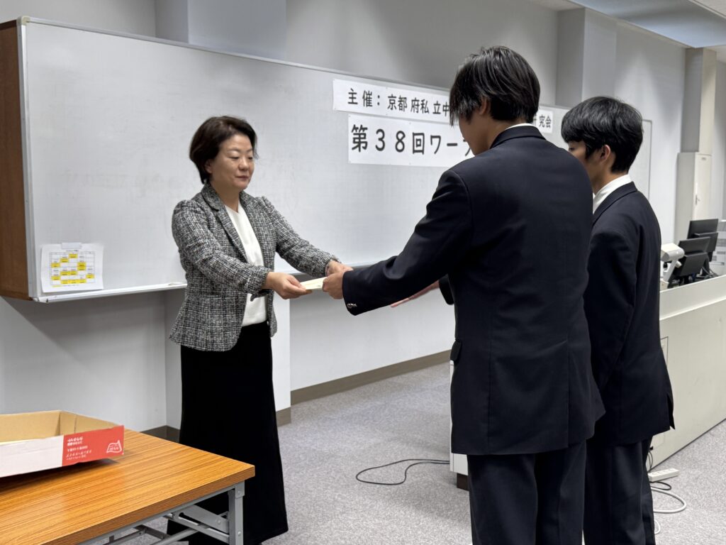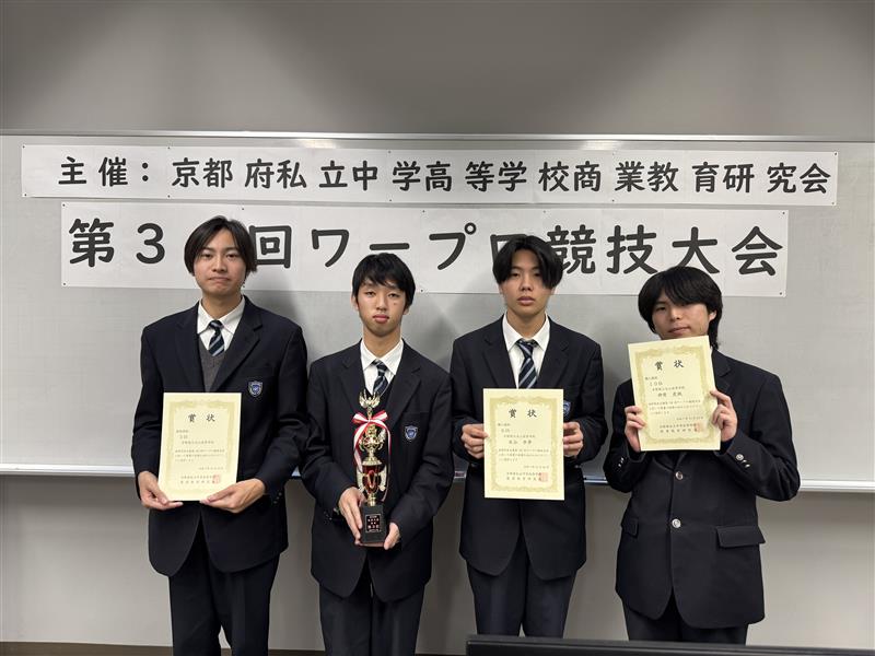 学校の様子12月23日(火)「京都府私立中学高等学校商業教育研究会」主催の第38回ワープロ競技大会が行われ、経営情報系統2年次生が参加をしました。団体競技の部では3位、個人競技の部では2名が入賞しました。2026年5月の大会に向けてますます練習に励みます。
