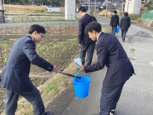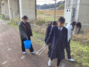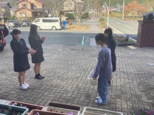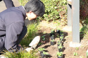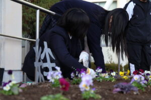 令和7年12月18日(木)に清掃ボランティア・花いっぱい運動を実施しました。多くの有志生徒と生徒会役員が地域や校内の掃除・ゴミ拾い、花壇への花植えを行いました。天候にも恵まれ、地域の美化に貢献することができました。また、環境サイエンス系統が育てた花に綾部高校由良川キャンパスの花を加え、大江学園と大江支所・大江駅に贈りました。