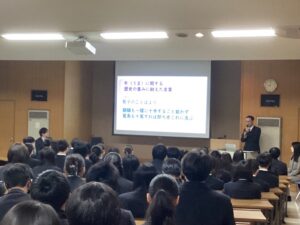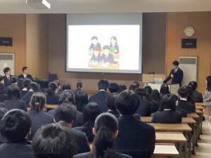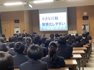 学校の様子 令和8年1月8日(木)、第3学期始業式を行いました。校長式辞では午年の意味や午年にちなんだ話をされ、その後教務部長・進路指導部長の講話がありました。