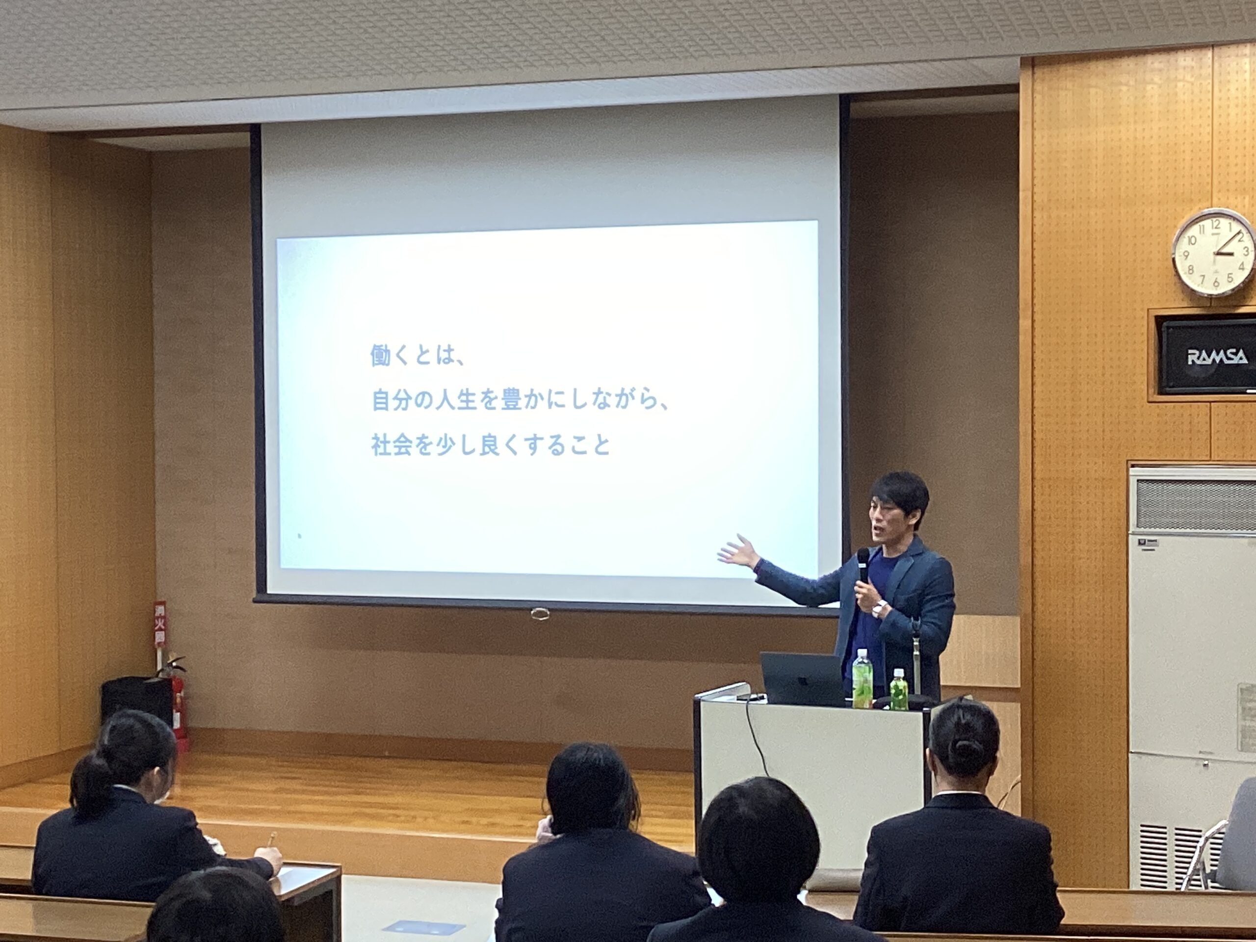 講演では、「なぜ働くのか」「学び続けることの大切さ」などについて、実体験を交えながら分かりやすくお話しいただきました。生徒たちにとって、就職・進学いずれを希望する場合においても、将来を考える上で大変学びの多い貴重な時間となりました。