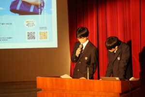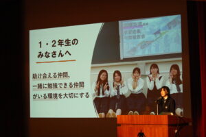 各系統で学んだことや、課題へどう向き合ったかをスライドや動画を使い発表しました。発表を聞いていた1・2年次生の中には、メモを取る姿も見られました。