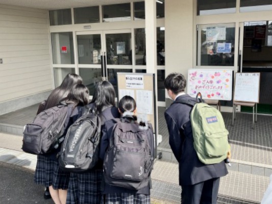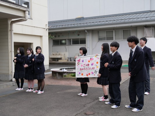 式後には生徒会の生徒が「ご入学おめでとうございます!」と笑顔で声を掛ける様子も見られました。 新入生が充実した3年間を送れるよう、教職員一同尽力します。