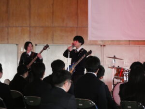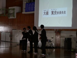 4月13日(月)、新入生歓迎会を行いました。生徒会が司会進行を務め、学校紹介動画や大江高校に関するクイズで会を盛り上げました。部活動紹介では、実演や動画を用いて新入生にアピールをしました。