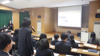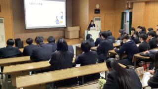 令和8年2月20日(金)、3年次生が「進路体験講話」を行いました。8名の3年次生が、進学・就職それぞれの内容で、進路決定までの流れや、今やるべきこと、高校生活の過ごし方、見通しを持つことの大切さなどについて講話を行いました。下級生たちは3...