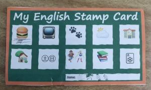 大江学園のできごと 英語スタンプラリー 中学校の生徒に、ALTの先生がスタンプラリーを行っています。休み時間にカードを持って先生のところに行き、カードの絵にちなんだ質問をします。英語でやりとりして「Good Job」だとサインがもらえます。 2026.02.06 大江学園のできごと