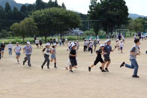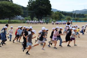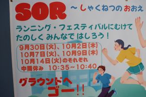 SOR 大江学園のできごと 2025.10.07 小学校のランニング・フェスティバルに向け、9月30日(火)より「SOR(しゃくねつの おおえ ランニング)」が始まっています。期間中の火曜、木曜の中間休み、小学生全員が5分間走を行い、走力を高めています。14日(火)まで行います。