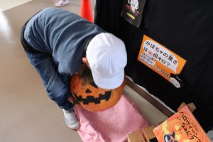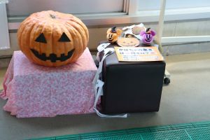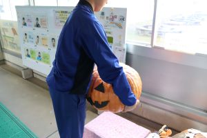 今日はハロウィン。学校にも「ジャック・オー・ランタン」を置き、重さ当てクイズをしました。正解は、大きいのは17㎏、小さいのは13.6㎏でした。