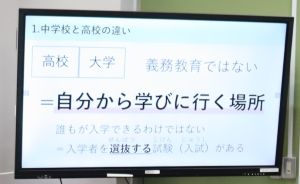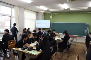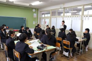 中1キャリア教育 大江学園のできごと 2025.11.17 11月13日(木)、大江高校の西村先生に来校いただき、中学1年生がキャリア教育を行いました。小学校と中学校の違いを考えてから、中学校と高校の違いを予想していきました。その後、これからの自分を見つめるために必要な「学ぶ意義」や「考えること」について意識化を図りました。