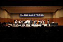 市立小学校音楽祭 大江学園のできごと 2025.11.18 11月12日(水)、小学6年生が福知山市立小学校音楽祭に参加し、心を一つに練習に取り組んだ合奏と合唱を披露しました。合奏は「キリマンジャロ」、合唱は「歌よありがとう」です。大江小は午前の部の最初に登場しました。幕開けにふさわしい素晴らしい発表でした。