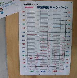 中学校期末テスト 大江学園のできごと 2025.11.27 11月26日(水)から28日(金)までは中学校の期末テストです。学習委員会による学習時間調べや、学校からの学習方法のアドバイス等を参考にしながら、テストに取り組みます。併せて前回に続き、小学校でも「大江スタディーウィーク」に取り組んでいます。