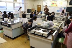小3・2組 収穫祭 大江学園のできごと 2025.12.03 12月1日(月)、小学校3年生が学級園で育てたさつまいもを使って、収穫祭を行いました。2組と合同のパーティーにしようと子どもたちが企画し、担当を決めて計画、準備をしました。今日はみんなでさつまいもスティックを作って、楽しく食べました。