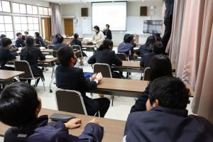 プレコンセプションケア出前授業 がんばる大江っ子 2025.12.08 12月2日(火)、「プレコンセプションケアプロジェクト事業」として助産師の方に来ていただき、「いのちの出前授業」を実施しました。これは、生徒達に妊娠や出産に関する正しい知識を学ぶ機会を提供し、将来、自らが望むライフデザインの実現に役立てることを目的とするものです。赤ちゃん人形を抱っこしたり、おなかにおもりのついたベルトを着け妊婦体験をしたりしながら、「新しい命との出会い」についてイメージすることができました。