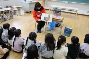 朝の読み聞かせ(小) 大江学園のできごと 2026.01.16 小学校では毎月2回、木曜日の朝に「おにさんこちら!」の皆様による読み聞かせを行っています。3学期第1回目は、1月15日(木)でした。ボランティアの皆様、いつもありがとうございます。そして、今年もよろしくお願いします。