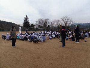 避難訓練 大江学園のできごと 2026.01.19 1月15日(木)、避難訓練を実施しました。昼休み中の地震発生を想定し、先生たちの指示がない状態での訓練としました。それぞれの場所で身をかがめたり、高学年が低学年を引率したりするなどの姿がありました。集合後は、安全担当より、災害はいつ起こるか分からないことや、お互いに助け合って命を守ることの大切さについて話をしました。