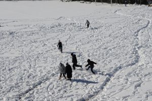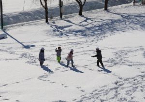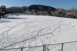 1月22日(木)は大雪警報発表のため休校になりましたが、23日には授業を再開することができました。雪でいっぱいの運動場で楽しみます。