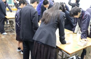 中2百人一首大会 大江学園のできごと 2026.02.02 1月29日(木)、中学2年生が百人一首大会を行いました。各グループで第1回戦を実施した後、1回戦での同じ順位同士が集まって第2回戦を行いました。久しぶりに百人一首をしたという生徒がほとんどで、みんなで楽しく盛り上がりました。