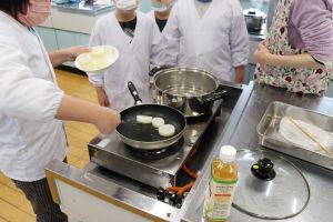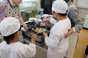 小学校2組 大根の収穫祭 大江学園のできごと 2026.03.04 小学校2組の子どもたちが、学校の畑で育てた大根を使って「大根の収穫祭」を行いました。みんなで協力して「大根ステーキ」と「大根もち」を作りました。手際よく作業を進める高学年、「こうするんやで、見とってよ。」と優しく低学年に声かけをする中学年、そして聞いたとおりにやってみる低学年、それぞれの学年の成長の姿がありました。