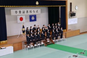 中学3年生全員が卒業証書を手にし、大江学園を巣立っていきました。みなさんの未来が希望に満ちたものになりますように。