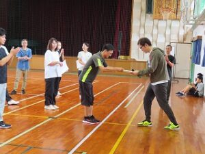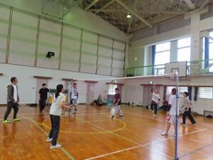 各学年での対抗戦で2コートに分かれて総当たりで実施しました。