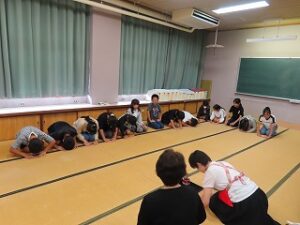 まずは、挨拶の仕方を教えていただき、それぞれに合わせて挨拶をすることや言葉がけ、作法などを教えていただきました。