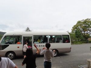 バスが見えた瞬間、飛び跳ねながら喜びを表していました。