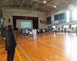 次は、体育館に行ってグループごとに練習です。初めての練習でしたが高学年を中心に工夫しながら飛ぶ練習をしました。