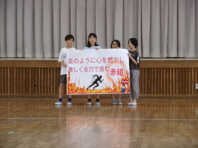 運動会に向けてそれぞれの色で色別集会を行いました。