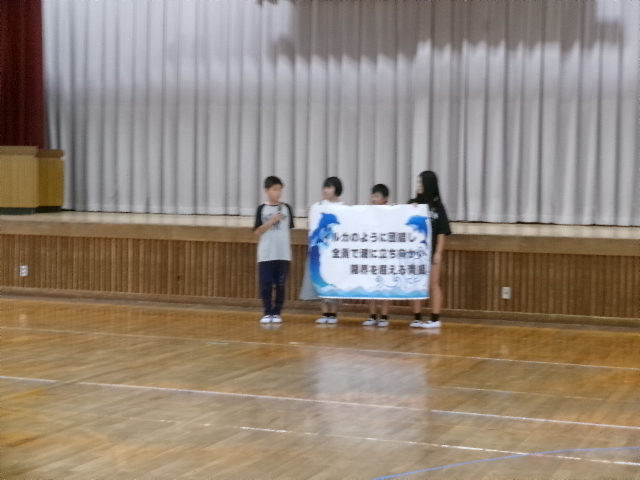 各リーダーの紹介やスローガンの発表、応援や大玉おくりの練習を行いました。