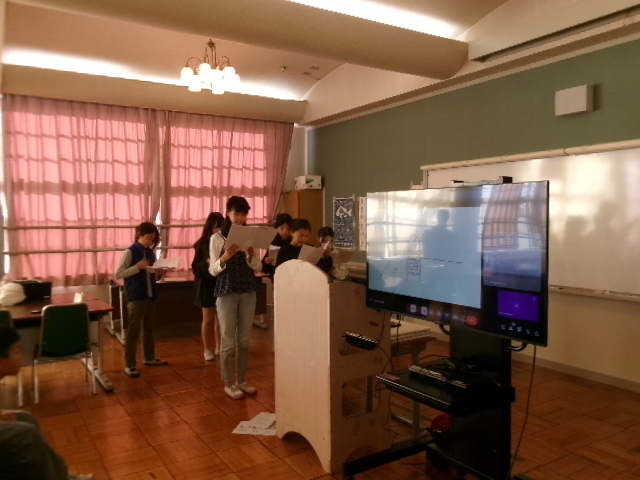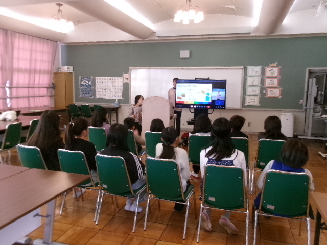 感染症対策の為、急遽オンラインで行うことになりましたが、各学級で真剣に聞く姿が見られました。