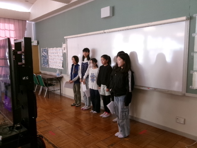 先生からのお話や、学年代表の人から自分の得意なことの発表、読み聞かせがありました。