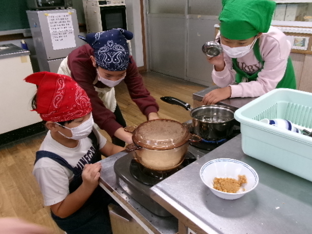 火加減が難しく、少し下の部分がこげてしまった班もありましたが、しっかり吸水もしたご飯は