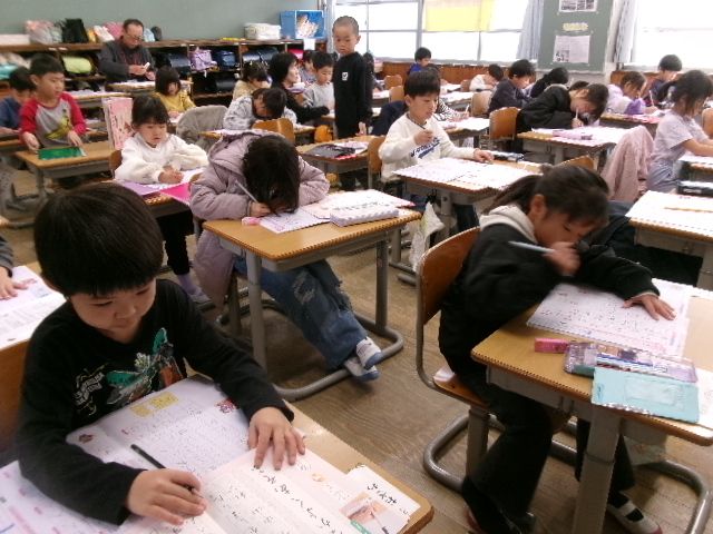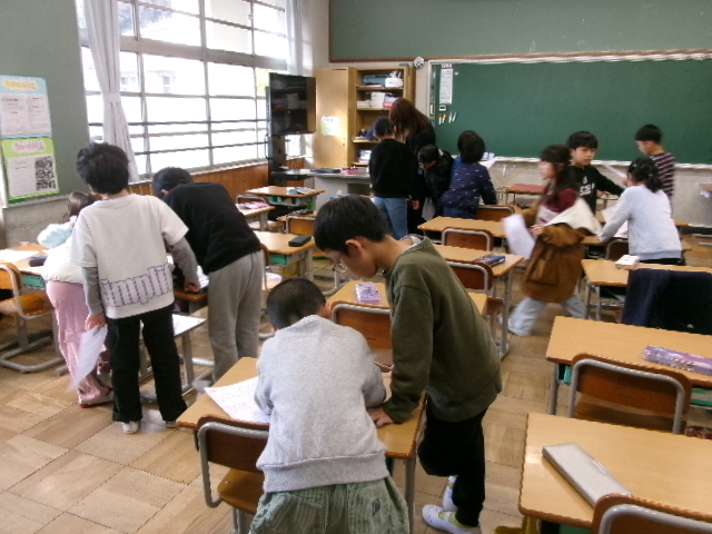 係決めをしているクラス、書写を頑張っているクラス、冬休みビンゴを楽しんでいるクラス、学年集会をしている学年・・・