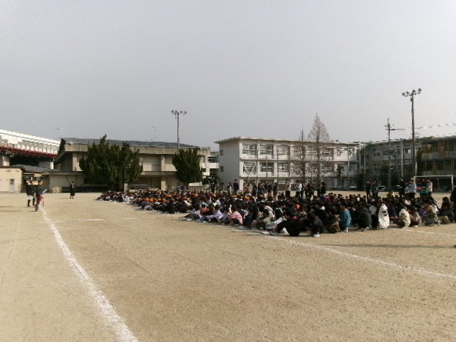 運動場では、校長先生のお話を聞きました。