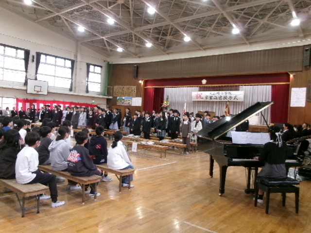 今までの思い出やお世話になった家族や先生、地域の方々への感謝の気持ちを精一杯伝えた「別れのことば」