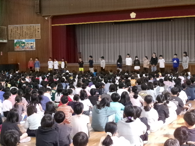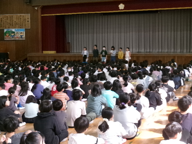 新着情報4月22日、今年度1回目の全校集会を行いました。今回の集会では、前期児童会の役員と前期各委員会の活動内容の説明と委員長と副委員長の紹介がありました。さすが6年生、児童会役員をはじめ、どの委員会も堂々とわかりやすく紹介してくれました。