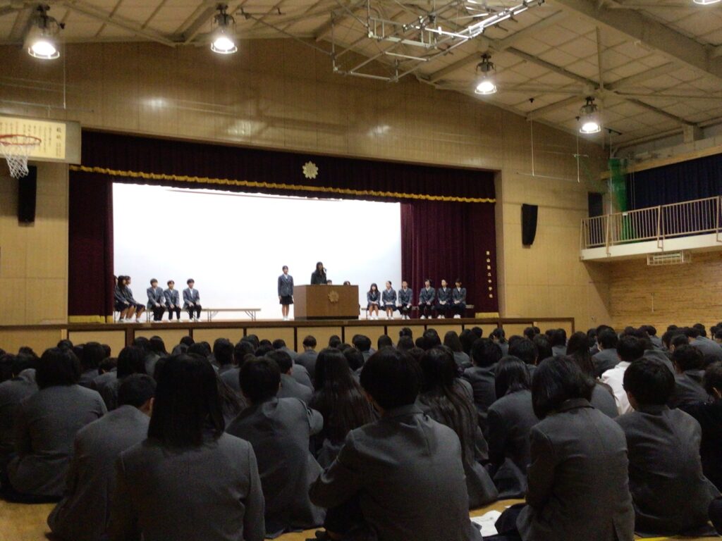 3、4時間目に全校生徒が集まり、生徒会選挙を行いました。