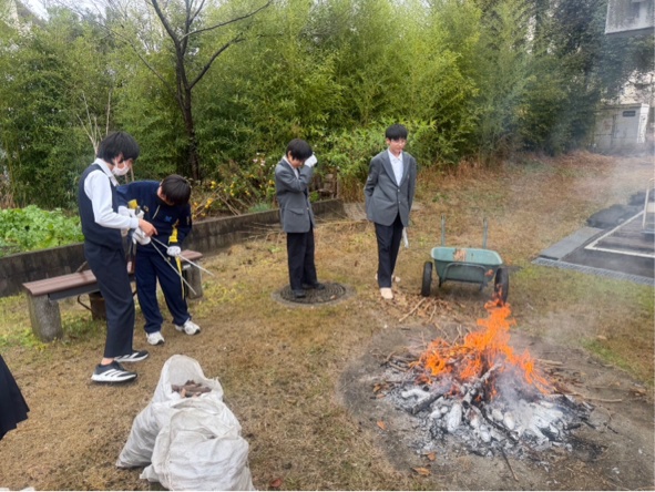 科学部で年内最後の活動として焼き芋づくりを行いました。