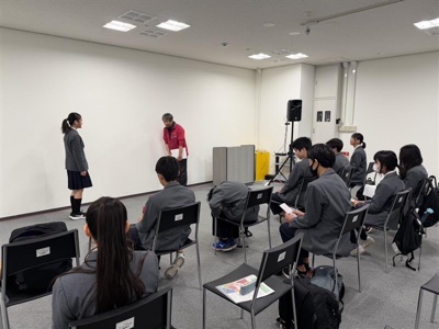 厳しい寒さの中、2年生は校外学習(キャリア教育)を実施しました。企業訪問や外国人観光客へのインタビューなどのミッションにも取り組みながら判別で活動しました。