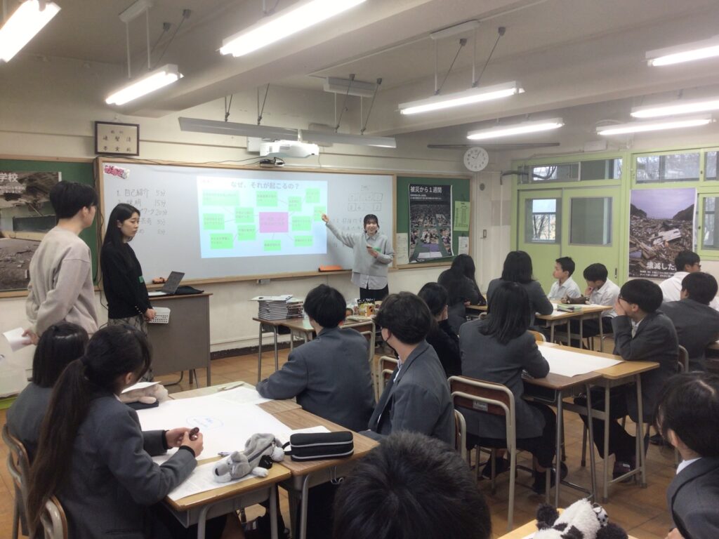 学生団体Enの大学生4名が来校し、防災教育を行ってくださいました。