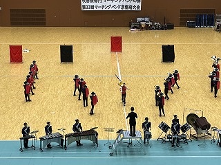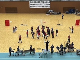 03.学校行事10月13日(月)第33回マーチングバンド京都府大会が島津アリーナ京都で開催されました。本校吹奏楽部は、中学生の部、マーチングパーカッション・カラーがラードの部に出演し、テーマタイトル「Incredibles!」を演奏し見事銀賞に輝きました。演奏だけにとどまらず、仲間と心を一つにし、音楽と動きを融合させて素敵な表現をしてくれました。