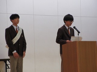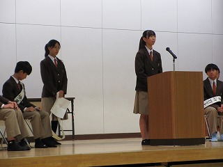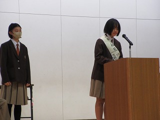 03.学校行事10月23日(木)~27日(月)まで7名の立候補者は、選挙運動を行い、10月28日(火)6校時に令和7年度生徒会選挙を体育館で行いました。立候補者の演説、応援者の演説のあと各教室の戻り投票を行いました。