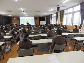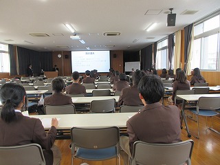 03.学校行事11月11日(火)5・6校時に2年生高校訪問を実施しました。京都八幡高等学校北キャンパスに訪問し、学校説明、校内見学、授業見学(総合選択制授業)など特色のある教育内容に触れる機会となり、自らの進路について考える経験をすることができました。
