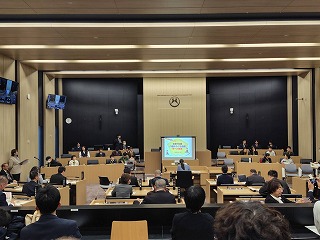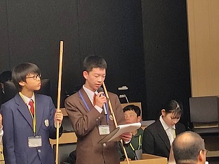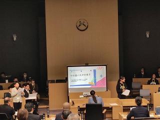 1月17日(土)13時から第8回八幡市子ども会議~市への提言~が市役所の議場で開催されました。市内小中高生が、特産品や環境問題、防災等について市へ提言しました。本校からは、2年生の武一陽さんと長村茉衣さんが参加し中学生班は、放置竹林と防災、避難所問題という多岐にわたる課題に対し、八幡の竹を使って「ゲル」と呼ばれるモンゴルの伝統的な住居をベースとしたテントを作ることを提言しました。