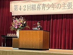 03.学校行事1月31日(土)第37回綴喜青少年の主張大会が、13時から京田辺市中央公民館で開催されました。本校からは、2年生の長谷川美月さんが「親友が教えてくれた大切なこと」というタイトルで発表しました。八幡市青少年の主張大会につづき、八幡市代表として自分の体験から感じた内容で心に響く発表でした。