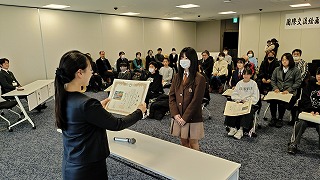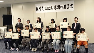 03.学校行事2月9日(月)八幡市役所にて、「国際交流に伴う絵画の感謝状授与式」が行われました。この取り組みは、平和と友好の国際親善を深める目的で、エジソンの生誕地で本市の友好都市であるアメリカオハイオ州マイラン村との絵画交流が実施されています。本校からは、2年の三島朱里さんの作品が出品され、感謝状を授与しました。受賞、おめでとうございます。