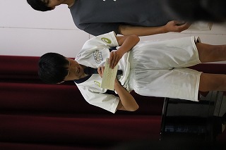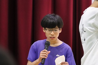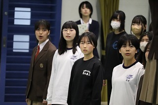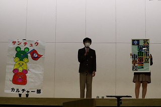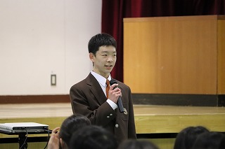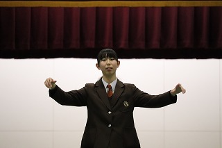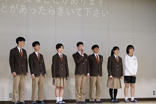 03.学校行事4月10日(金)5・6校時、生徒が主体となって新入生を迎える「生徒による入学式」新入生歓迎会を実施しました。初めて全校生徒が体育館に揃った中で、生徒会本部を中心に寸劇を交えた説明など和やかな雰囲気で、上級生が新入生を迎え入れることができました。部活動紹介も上級生が一生懸命考えたことを発表し、新入生も楽しく見ることができました。