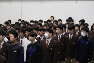 4月10日(金)5・6校時、生徒が主体となって新入生を迎える「生徒による入学式」新入生歓迎会を実施しました。初めて全校生徒が体育館に揃った中で、生徒会本部を中心に寸劇を交えた説明など和やかな雰囲気で、上級生が新入生を迎え入れることができました。部活動紹介も上級生が一生懸命考えたことを発表し、新入生も楽しく見ることができました。