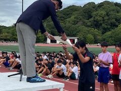 03.学校行事 綴喜地方新人体育大会 陸上競技の部 9月21日(日)、綴喜地方新人体育大会 陸上競技の部が行われました。男子総合 優勝、男女総合 2位と良い結果を残してくれました。 結果⇒綴喜新人大会(陸上の部) ... 2025.09.22 03.学校行事