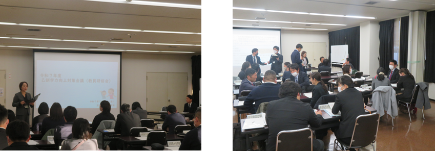 12月5日(金)に乙訓学力向上対策会議(教員研修会)を乙訓総合庁舎で開催しました。乙訓学力向上対策会議は各中学校区を単位とした具体的な取組の推進を図り、管内児童生徒の確かな学力の育成を目指すことを目的として開催しています。