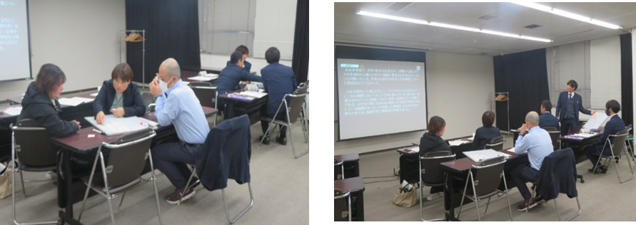 その後の講義では、いじめ重大事態を防ぐために、生徒指導提要改訂版の内容や法律を確認しました。また、グループ内で事例を基に生徒指導における具体的な組織的対応について考えました。教員一人の先入観や一面的な情報に左右されることなく、児童生徒一人ひとりの成長を支える体制を構築するためには、複数の教員による情報共有、客観的な行動記録、ケース会議を通じて、様々な視点から実態を把握することが大切だということを確認しました。